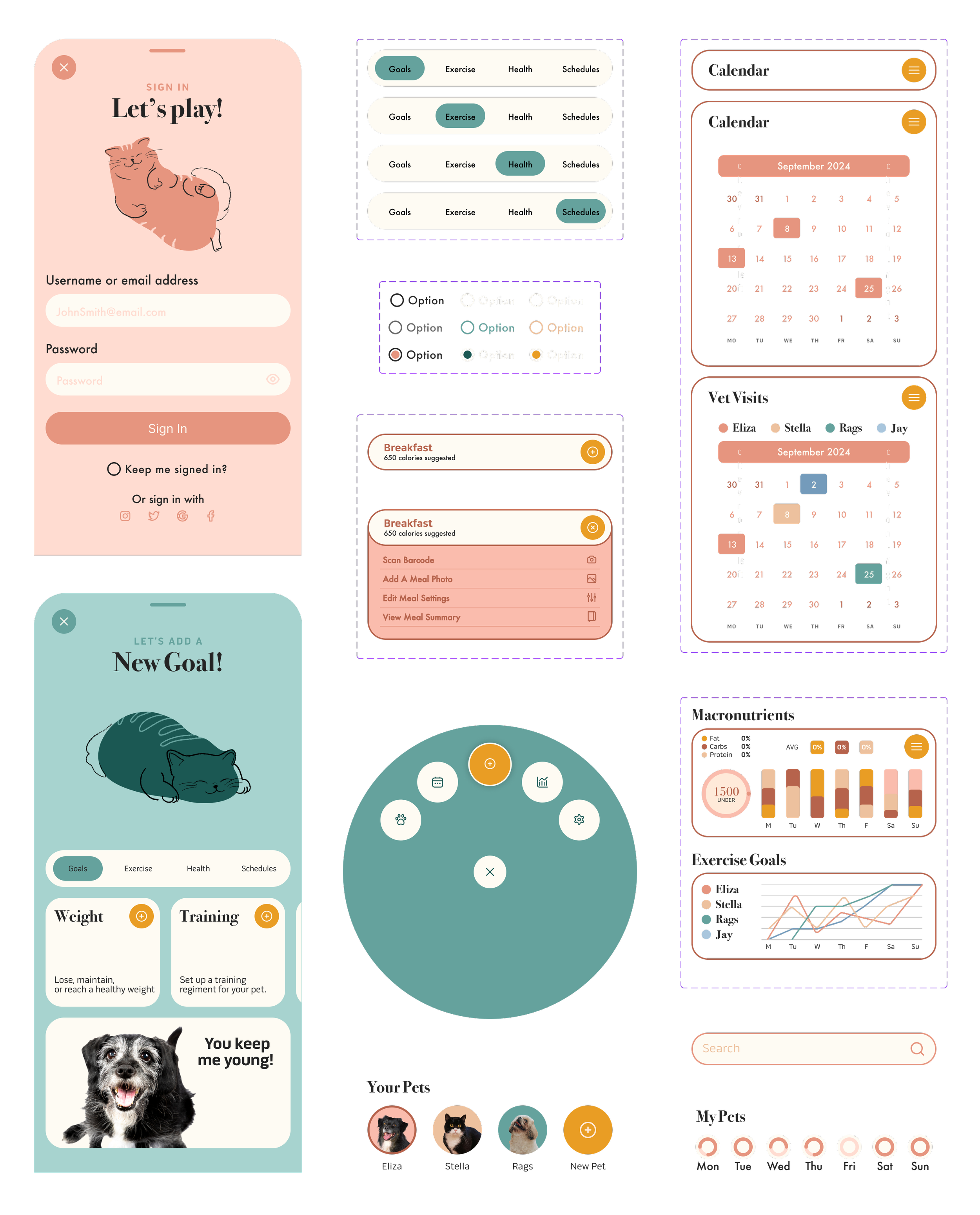 I want to educate users on the benefits of monitoring their pet paired with a preventative diet that suits their needs. Users should be able to record and access health information about their pet(s) at any given time. This app will allow users to track their pet’s diet, and health, and also help build an eating/feeding schedule for you and your pet.
